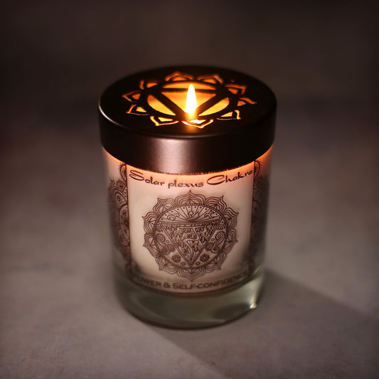 Prabhuji Solar Plexus Chakra Manipura | Soy Candle for Chakra Meditation Scented with Essential Oils | Lavender Blossom | Power and Self-confidence - 10.5oz